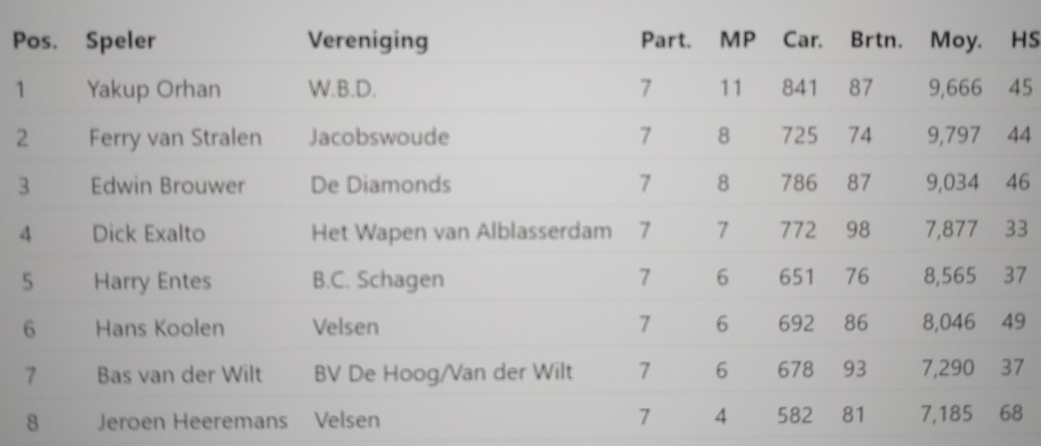 In zijn laatste partij was de “tank leeg” en verloor hij in 7 beurten van een ontketende Edwin Brouwer die daarmee zijn 3e plaats veilig stelde.